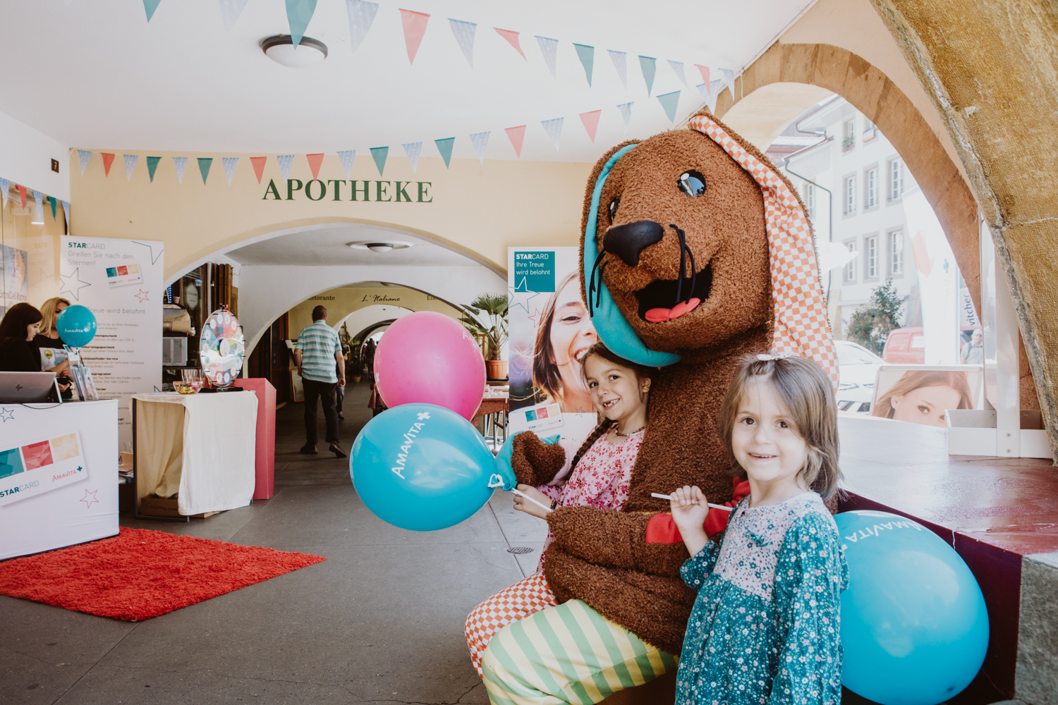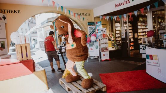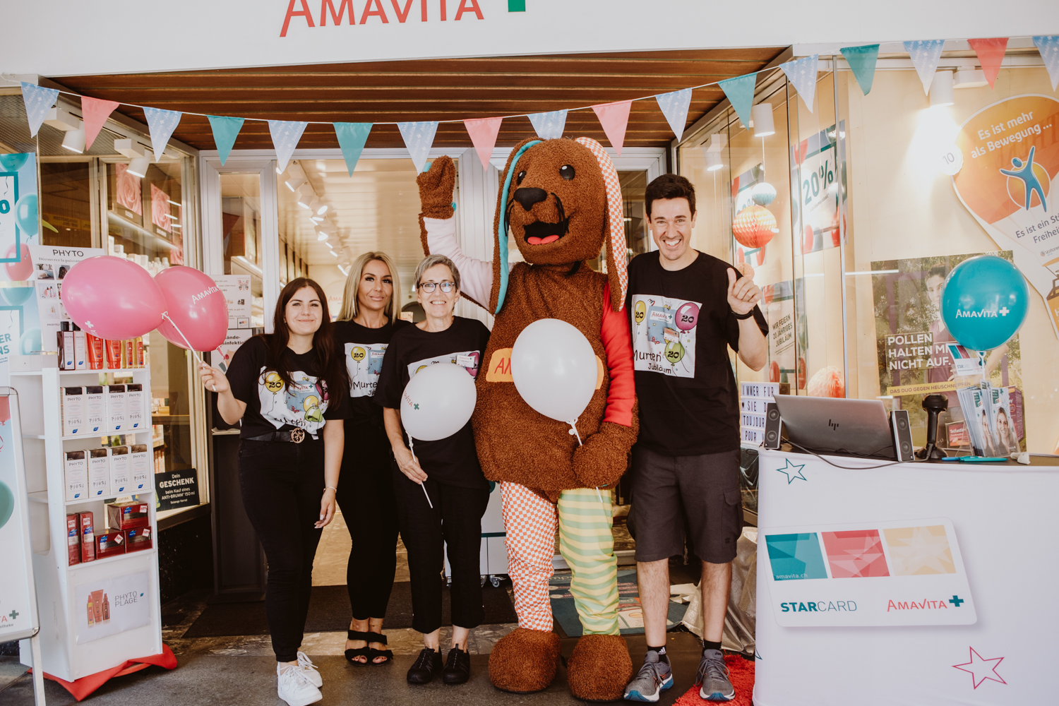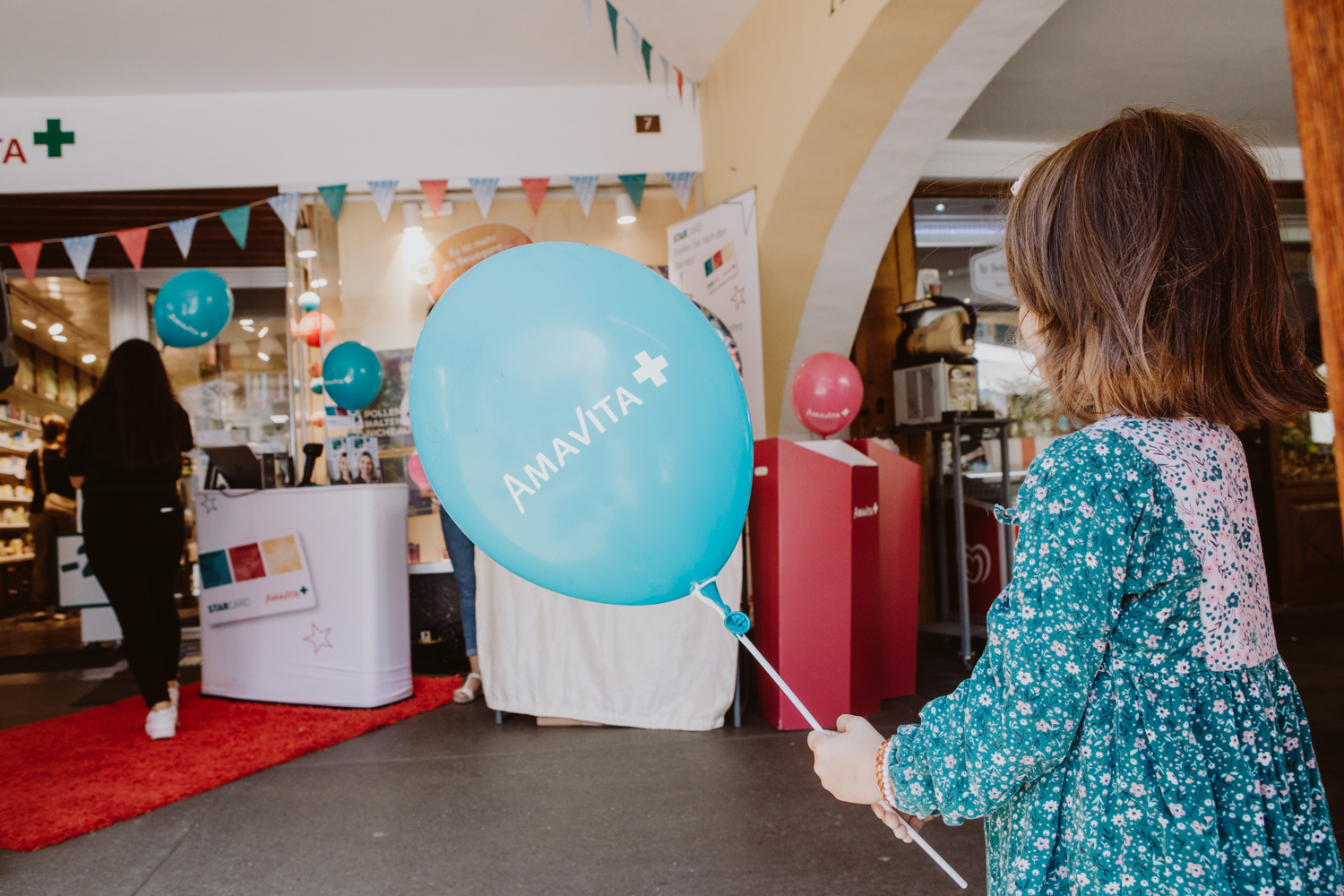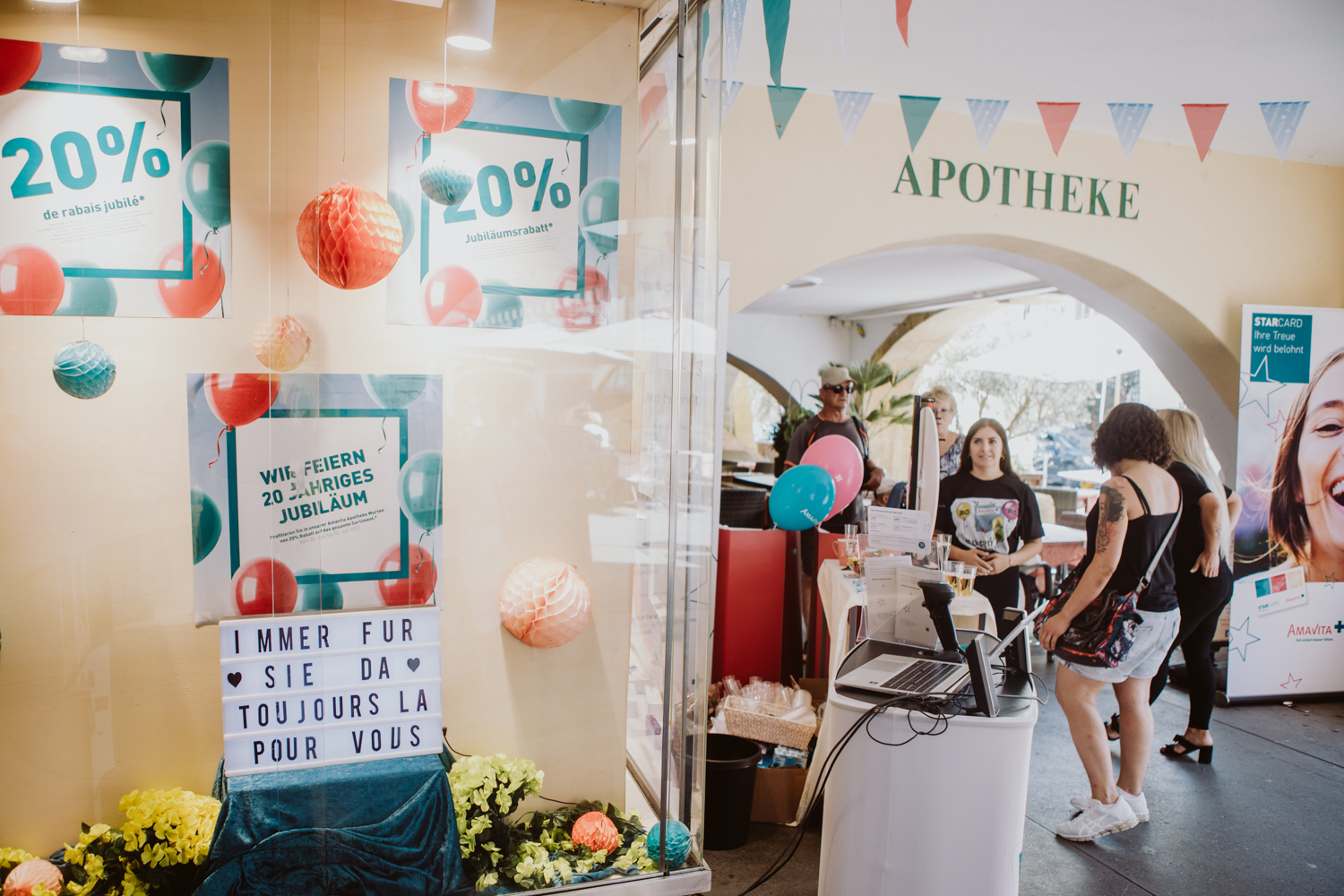 Zum Jubiläum ist der rote Teppich ausgerollt, das lebensgrosse Maskottchen Amalino bietet den Vorbeigehenden Traubenzucker, Rivella, Wasser und sogar Prosecco an und lädt ein, das Glücksrad zu drehen. Wer am Rad dreht, kann – mit Glück oder Geschick – Prozent-Gutscheine gewinnen oder darf sich etwas aus der Überraschungsbox auswählen.