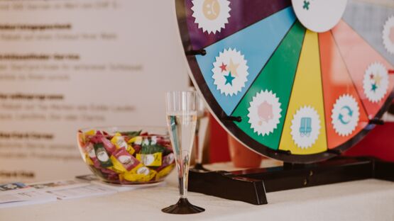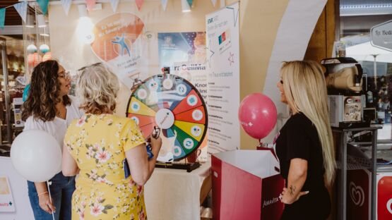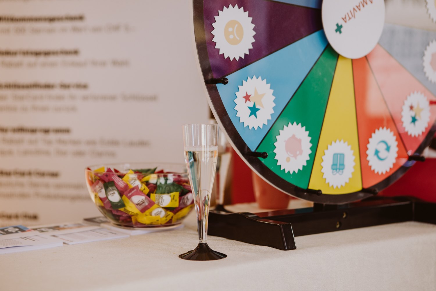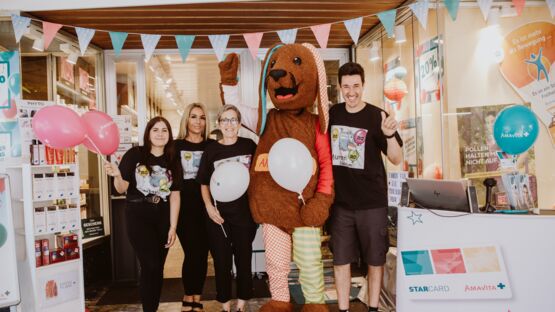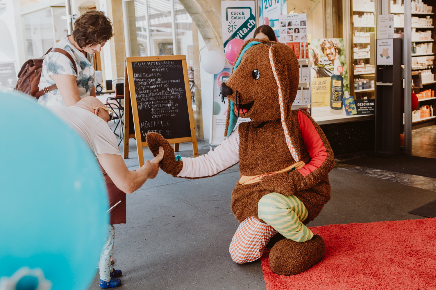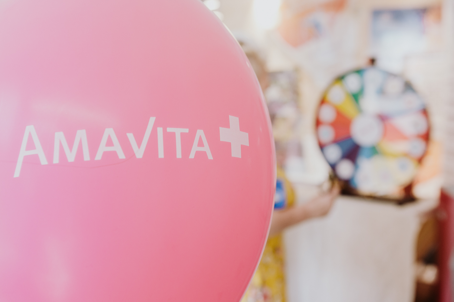 Zum Jubiläum ist der rote Teppich ausgerollt, das lebensgrosse Maskottchen Amalino bietet den Vorbeigehenden Traubenzucker, Rivella, Wasser und sogar Prosecco an und lädt ein, das Glücksrad zu drehen. Wer am Rad dreht, kann – mit Glück oder Geschick – Prozent-Gutscheine gewinnen oder darf sich etwas aus der Überraschungsbox auswählen.