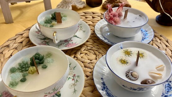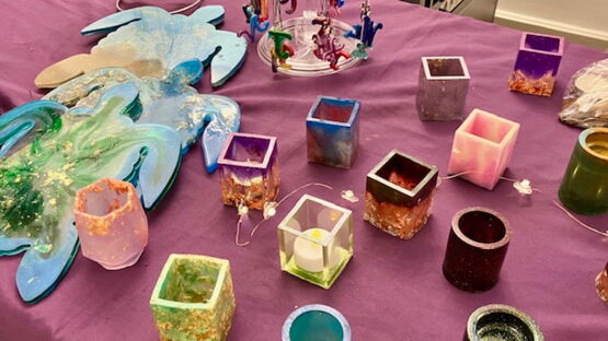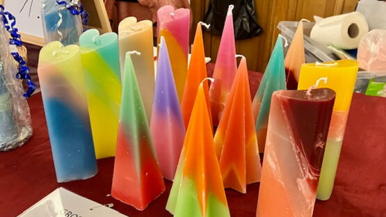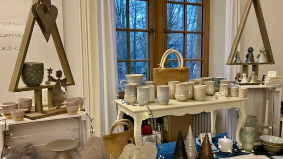 Das Angebot erstreckte sich von kunstvollen Holzartikeln über stimmungsvolle Kerzen, Kerzenständer, Kleidung wie Mützen und Pullover bis hin zu dekorativen Kränzen aus Naturmaterialien. Farbenfrohe Regenschirme, elegante Porzellan- und filigrane Glasartikel waren ebenso zu finden wie handgefertigte Armbänder aus Natursteinen und liebevoll gestaltete Dosen, Boxen und Verpackungen.