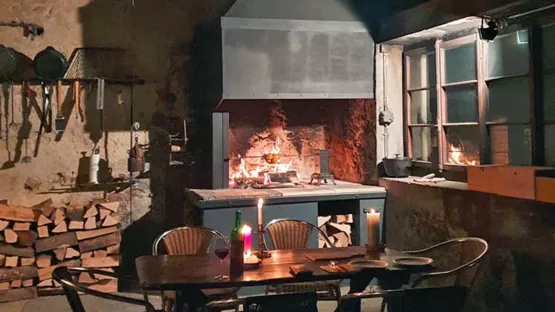 Sobald die alte Schmiede fertig renoviert ist, werden wir diesen rustikalen Raum -nebst dem Speisesaal beim Garten- für Events und Apéritifs nutzen können.