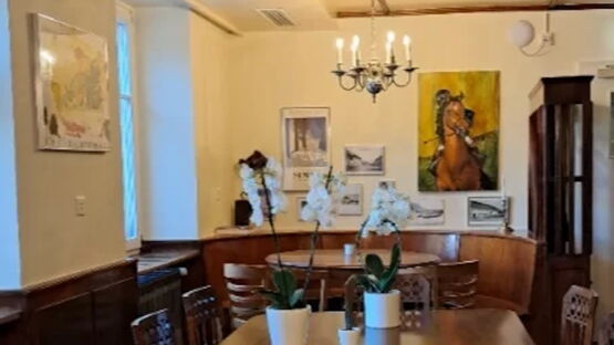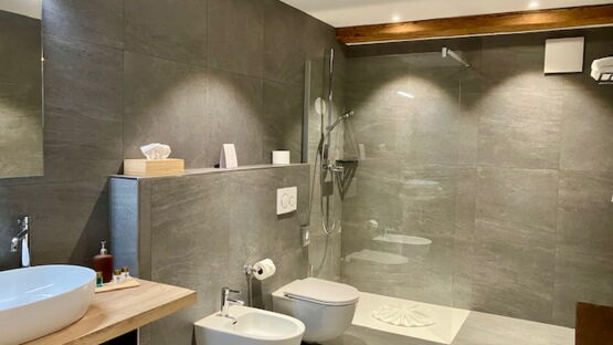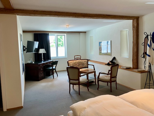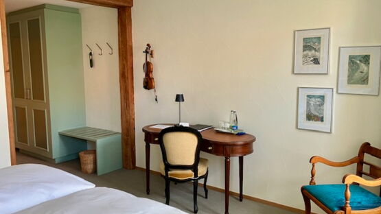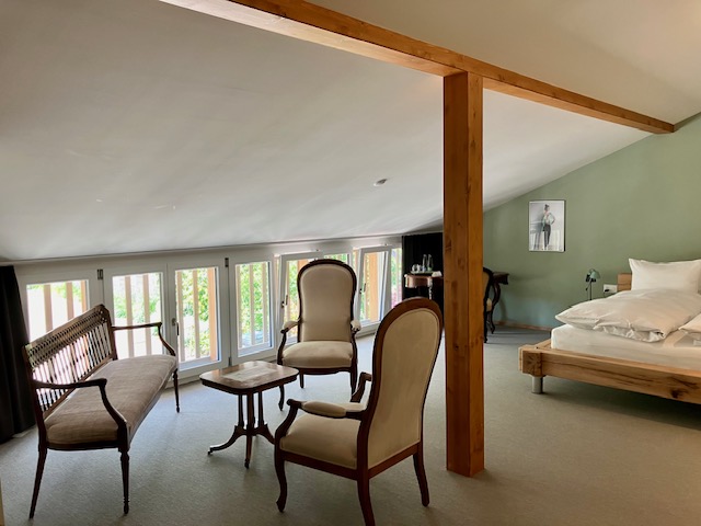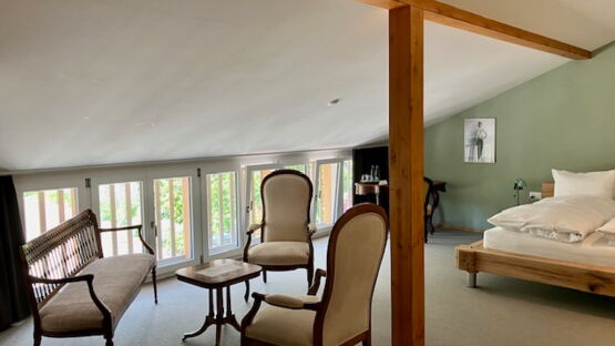 Ja, wir bieten mit fünf grosszügigen Doppelzimmern auch Übernachtungsmöglichkeiten an. Jedes Zimmer ist mit einem Schreibtisch ausgestattet und verfügt über ein eigenes Badezimmer mit Dusche. Kostenloses WLAN steht in allen Zimmern zur Verfügung, wobei einige Zimmer einen malerischen Blick auf den Garten bieten.