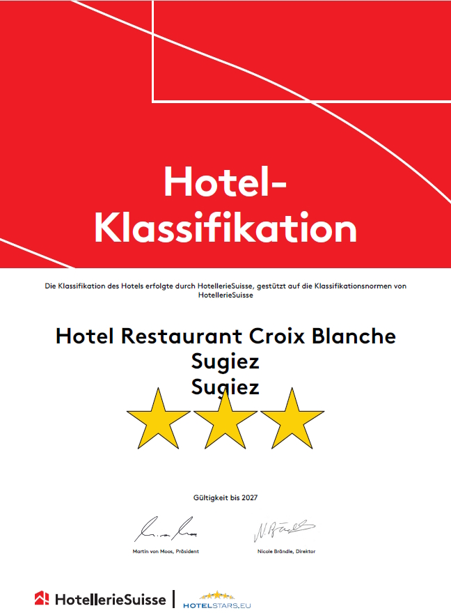 Das Hôtel Restaurant Croix Blanche in Sugiez erstrahlt nach einer umfassenden rund 15-monatigen Sanierung in neuem Glanz und hat nun als durch Hotellerie Suisse zertifiziertes 3-Sterne-Hôtel seine Türen geöffnet. Das frisch renovierte Anwesen vereint gekonnt Tradition und Moderne und lädt mit seiner charmanten Gartenterrasse zu genussvollen Momenten ein