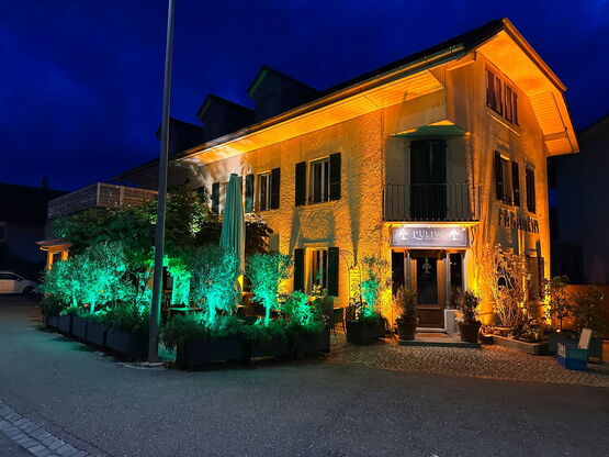 Später erstrahlte das Haus in einem faszinierenden Farbenspiel, das von «Illuminati», alias Antonio Pagano, kunstvoll installiert wurde. Die stimmungsvolle Beleuchtung verlieh dem Ristorante eine magische Stimmung und sorgte dafür, dass der Abend in einem besonderen Licht erstrahlte.