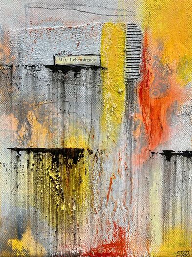 Ein offener Raum von Freiheit und Leichtigkeit eröffnet sich beim Anblick der Gemälde von Salomé Wuersch. Farbspiele, Strukturen aus unterschiedlichsten Materialien wie Papier, Marmormehl, Wespenwaben, Stoff und Texten gehen fließend ineinander über und kreieren eine Welt des Guten und Schönen - eine Welt, die einem angenehmen Traum anmutet. Dabei eröffnet sich bei jedem weiteren Werk von Salomé Wuersch ein neuer Traum, an den die konkrete Erinnerung, ähnlich nach dem Schlaf, verschwindet. Doch der Traum hinterlässt ein sommerlich leichtes Gefühl über den ganzen Tag hinweg. Leicht, hell, authentisch und unverstellt.
