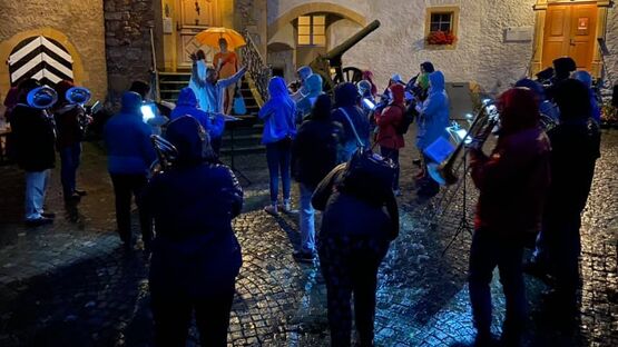 Die Stadtmusik spielte trotz strömendem Regen Quartierkonzerte an der Soli
