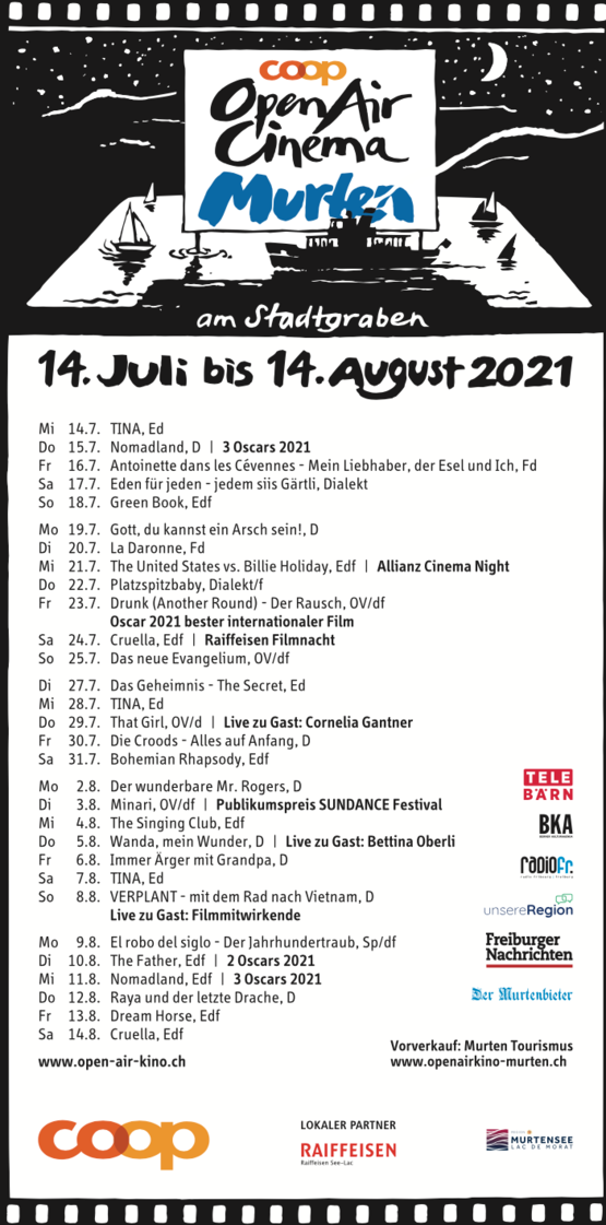 Weitere Informationen: www.openairkino-murten.ch