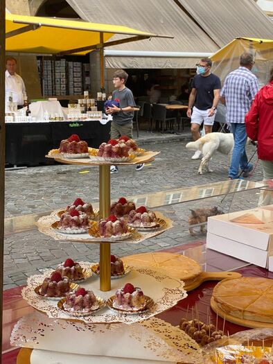 Der Sommermarkt fiel womöglich etwas bescheidener aus als in früheren Jahren, aber die Auswahl war ansprechend: Korbwaren, Basttaschen und -hüte, für den Feinschmecker Schnecken, Tees, Kaffee oder Himbeertörtchen. Gestricktes und Leinenes wurde feilgeboten, Seifen, kunstvolle 3D-Pop-up-Karten, Schmuck und Naschereien. Die Terrassen der Cafés waren gut besetzt, es lag eine fröhliche, unbekümmerte Stimmung in der Luft (unsereRegion berichtete: Murtner Sommermarkt erfreut sowohl Einheimische wie auch Touristen).