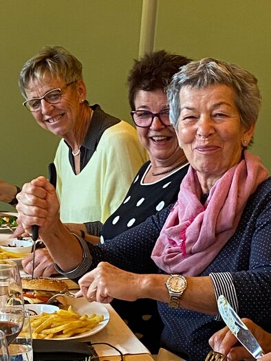 Nicht zu Fuss, sondern mit dem Postauto fuhren wir durch den Regen ins Rüttihubelbad. In kurzer Form skizzierte ich schon im Zug die Geisteshaltung der Anthroposophie (Philosophische Richtung) von Rudolf Steiner. Interessante Gespräche ergaben sich daraus. Für einmal sassen wir 19 Teilnehmenden nicht beim Picknick zusammen, sondern gönnten uns ein sehr gutes Essen im Restaurant bei weissem Gedeck und vielen Gläsern - die Stimmung war wunderbar!