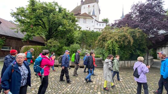 Das Regenwetter hat auch sein Gutes - eine neue Idee kam gut an! Kurz entschlossen transformierten wir die vorgesehene Taubenlochschlucht-Wanderung in einen Kulturtag zum Schloss Worb und ins Rüttihubelbad in Walkringen. Auf eindrückliche Art und Weise führte uns der Schlosslandwirt Urs Bernhard mit interessanten Ausführungen durch das Anwesen auf dem Schlosshügel. Wir wissen jetzt, dass die Freiherren von Worb im Jahr 1130 die Grundsteine für die Burg legten, dass Zähringer hier Gerichtstermine hielten und mehrere angesehene Berner Familien Besitzer waren – zum Beispiel die Familien von Diesbach und von Graffenried. 1956 Kaufte Hans W. Seelhofer das Schloss Worb für 33’000 Franken. Die Renovation der verwahrlosten Schlosswohnungen kostete ein Vielfaches des Kaufpreises.