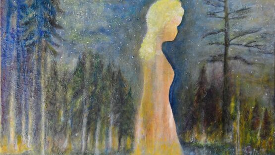 Gekonnt setzt sie das Wahrzeichen von Murten in ein Abendlicht. Oder sie malt eine Moorlandschaft, bei der sie den überragenden Wolkenhimmel ohne Pinsel, mit dem blossen Ringfinger bearbeitet. Auffallend die immer wieder bevorzugt verwendeten Farbtöne, die sich im Rotbraun-, Orange- und Beigespektrum bewegen. Ein anderes Bild lädt zum Verweilen auf einer Bank am Murtensee ein. Manchmal, einer Intuition folgend, lässt sie beim Malen ihrer Fantasie freien Lauf und wendet auch das Mittel der Abstraktion an. Als Beispiel dafür ist ein Bild, auf welchem eine im Vordergrund übergrosse blonde Frau in langem Kleid im Wasser schreitet. Im Hintergrund wird ein Wald unter einem Sternenhimmel angedeutet. In ihren Landschaftsbildern nimmt uns Rosemarie Liechti auch auf Reisen nach Italien, Neuseeland und Asien mit.