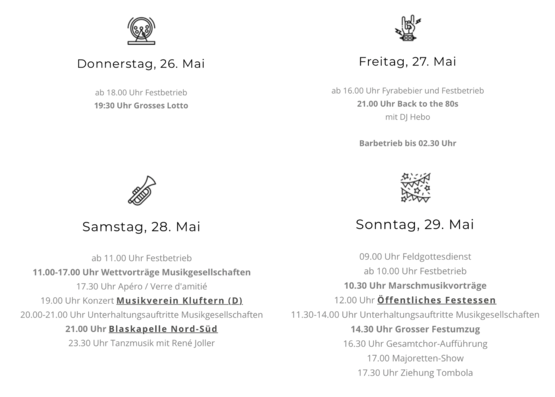 Die Musikantinnen und Musikanten freuen sich ebenso wie die Region Gurmels über einen tollen Besuch und werden die letzten Vorbereitungsaufgaben noch in die Hand nehmen. Der Aufbau des Fest-Areals hat dabei bereits am Samstag vor Auffahrt begonnen und unter tüchtiger Führung von Gemeinderat Beat Meuwly und seinem Sohn Adrian viele Stunden harte Arbeit in Auftrag genommen.