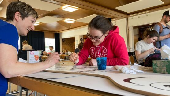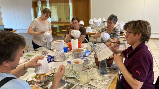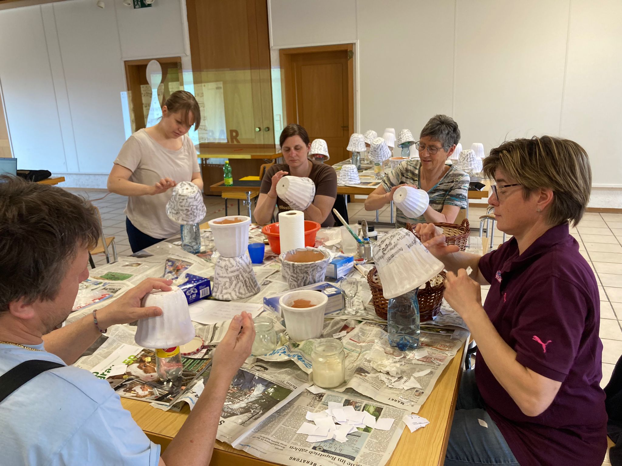 Nachdem die Schrecken der Pandemie etwas in den Hintergrund gerückt sind, steigt die Vorfreude im ganzen Dorf auf den ersten Grossanlass seit fast drei Jahren. Die Begeisterung hat nun auch die Musikgesellschaft vollumfänglich ergriffen. Gerade erst das erste Jahreskonzert seit 2019 fertig, wurden die Proben im April durch Bastelabende ersetzt. Aus passionierten Musikerinnen und Musikern wurden engagierte Dekorateure. So konnten die herzigen Papp-Figuren erstellt werden, welche als Maskottchen für das Bezirksmusikfest fungieren werden. Zudem wurden auch kleine Windredli gebastelt, die die Festregion direkt bei der Tribüne der Mehrfachturnhalle in Gurmels schmücken werden. Überall sind – getreu dem Motto "eifach musig" – Noten aufgemalt, die auf den musikalischen Wettbewerb hinweisen werden. Mit grossem Aufwand und viel Liebe zur Detailarbeit wurde aus Zeitungen, Pappmaschee, Notenblättern und Blumentöpfen diese Dekoration hergestellt.