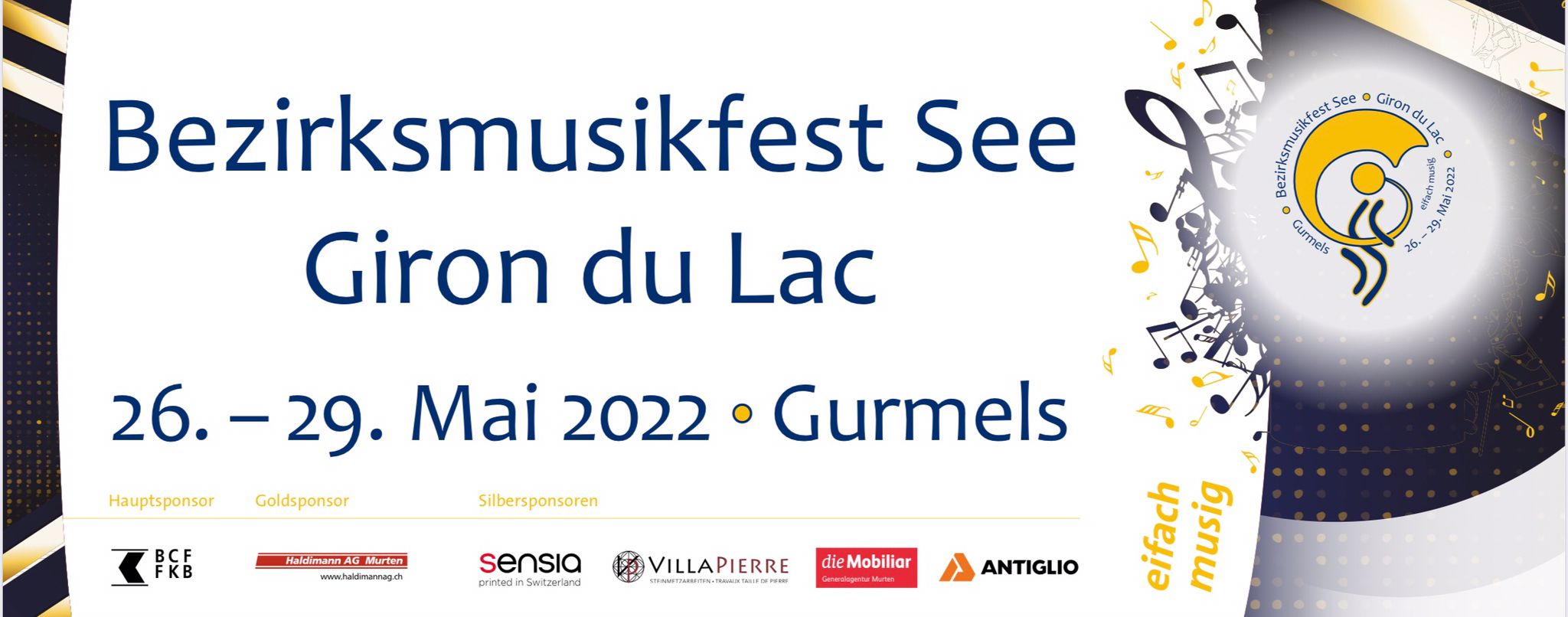 Seit 2019 ist das OK unter der Führung des äusserst engagierten Präsidenten Hansjürg Lüthi an der Planung des Bezirksmusikfests, welches vom 26. bis 29. Mai 2022 unter dem Motto "eifach musig" in Gurmels stattfinden wird.