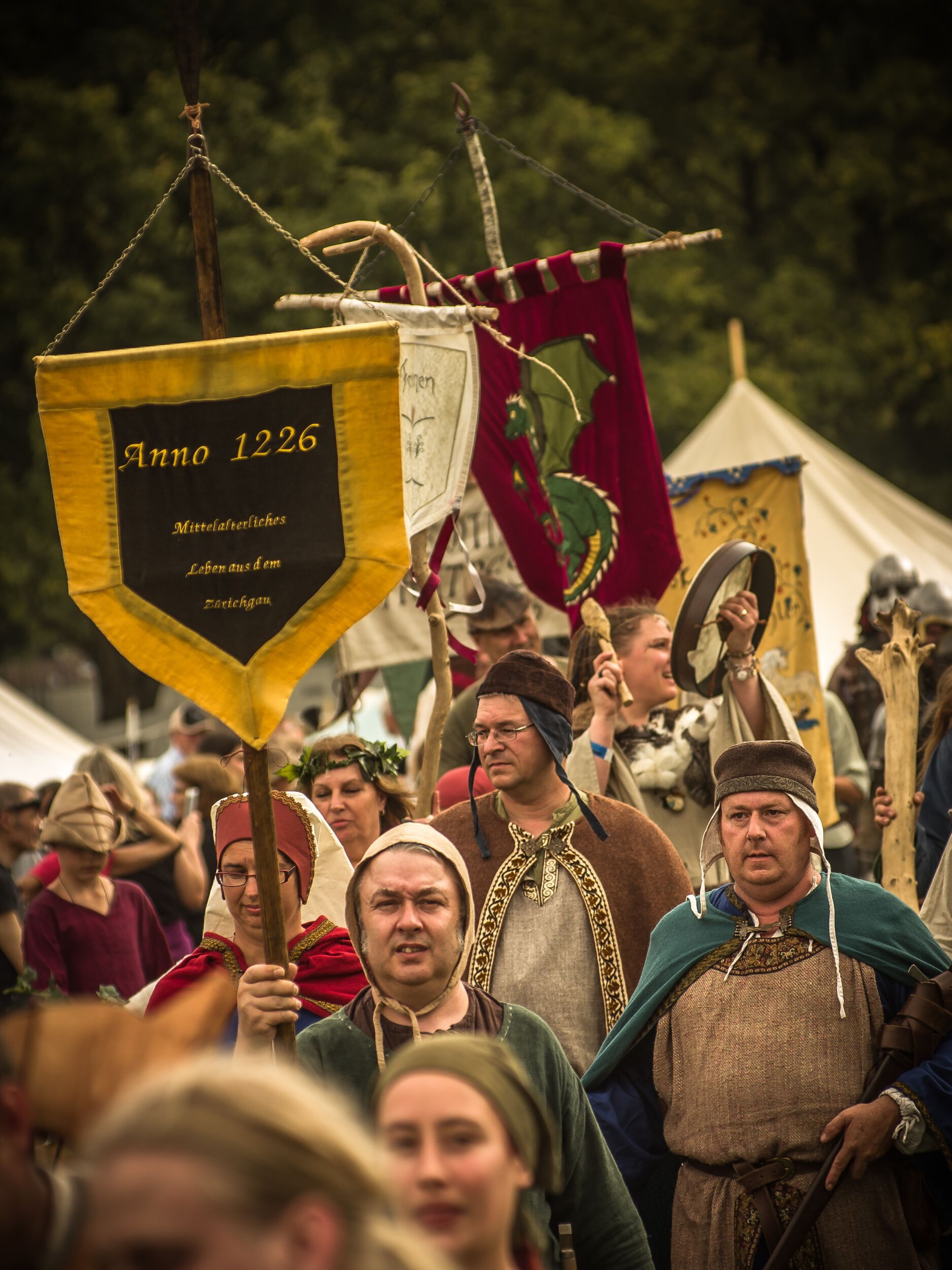 Das Volk feuert von den Rängen die Ritter im Staub der Arena an, welche um Ansehen und Ehre kämpfen. Weiter sind der Falkner, die Gaukler, Showkämpfer oder nachts die Feuerkünstler zu bestaunen. Auf der Bühne tritt die Nummer 1 des schweizerischen Mittealter Folks und Rocks auf, die aus der Region stammende Koenix Band.