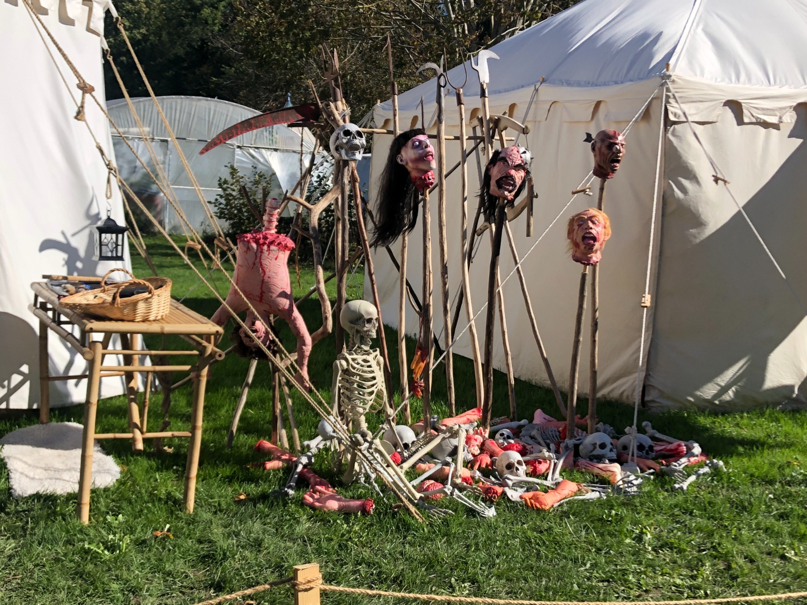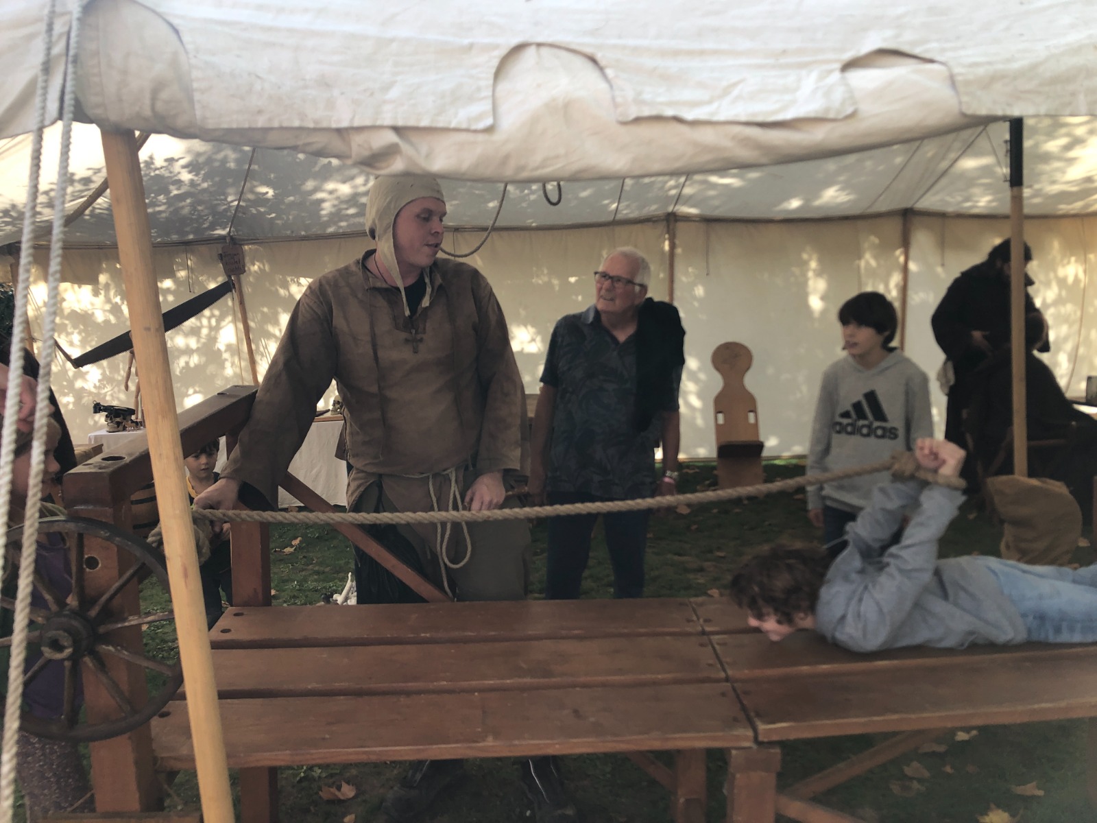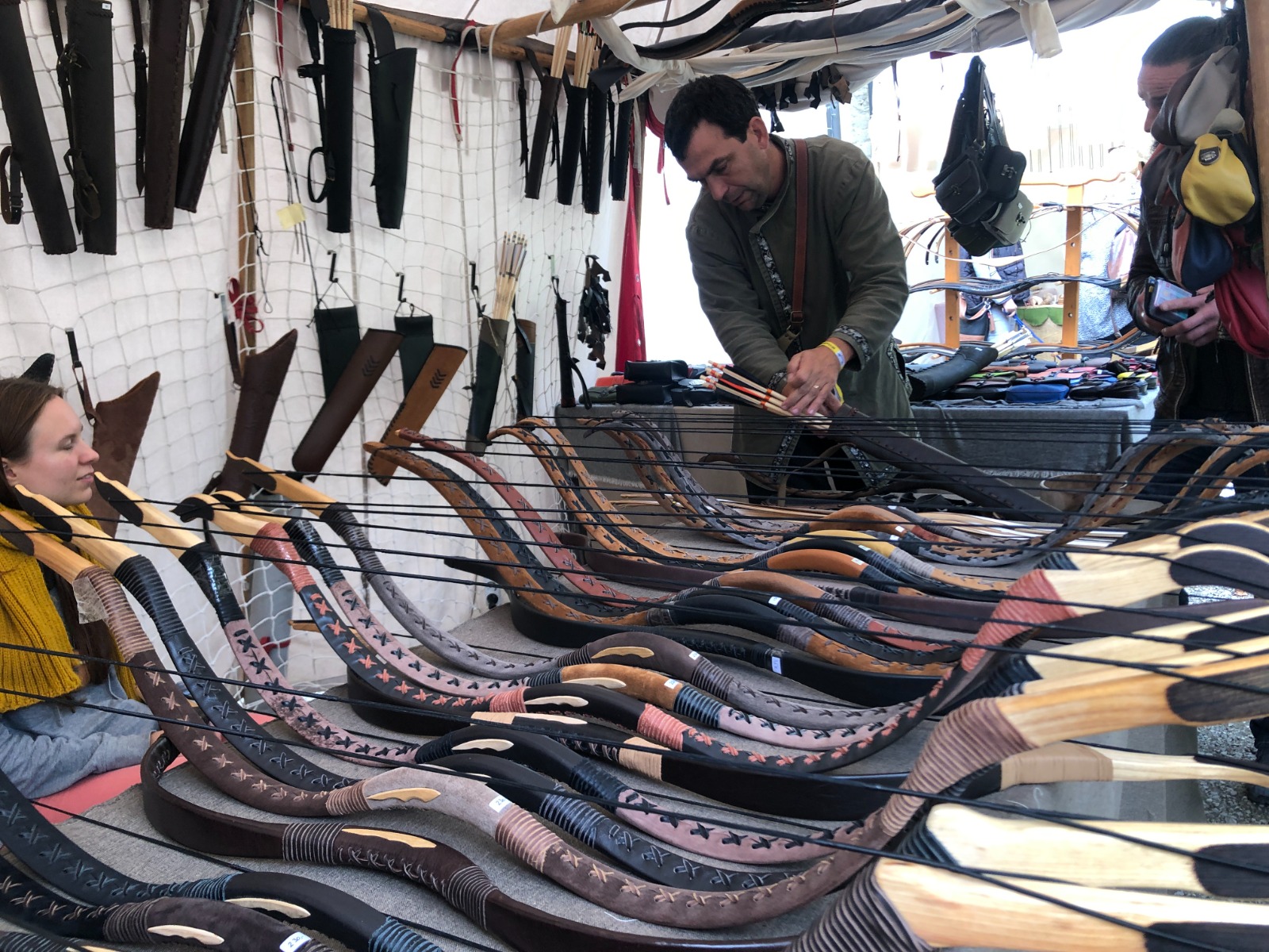 Neben den wichtigen Programmpunkten, dem Ringen der bewaffneten Ritter um den Sieg und die Gunst des Publikums, hielten unzählige Marktleute ihre Ware feil: Schmuck und Waffen, Trinkbares und andere Köstlichkeiten. Marktbesucher*innen mit einem reinen Gewissen und einer sauberen Weste durften sich gar probehalber den verschiedensten mittelalterlichen Foltermethoden hingeben.