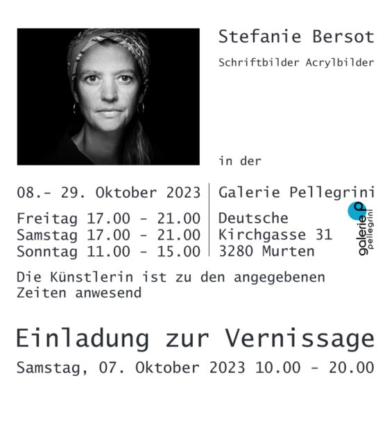 Die in Kerzers aufgewachsene Künstlerin Stefanie Bersot aka Stefanie-ART stellt in der Galerie Pellegrini vom 8. bis 29. Oktober Schriftbilder und Acrylbilder zum Thema «Nimm dir Zeit» aus. Sie arbeitet und lebt in Ins.