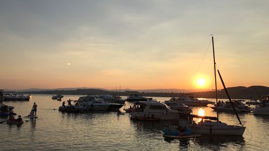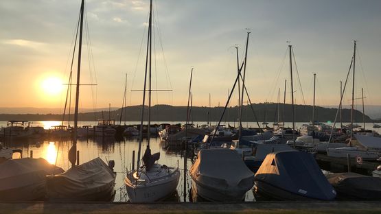Wir sind auf dem Weg und zeigen Ihnen schon mal ein paar Eindrücke des Sonnenuntergangs über dem Murtensee