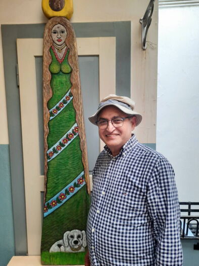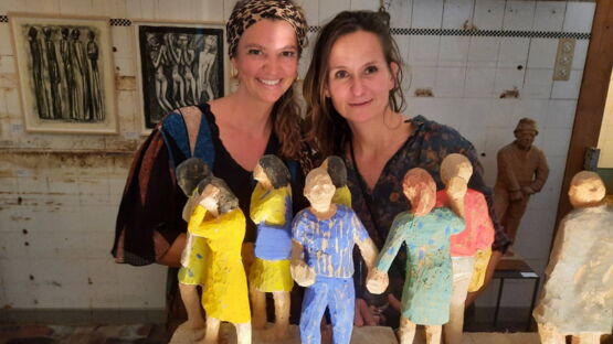 14 / 17BildergalerieStefanie Bersot, Ins, Franziska Hirschi, Murten - vor einer Holzskuptur von Werner Ignaz Jans -
