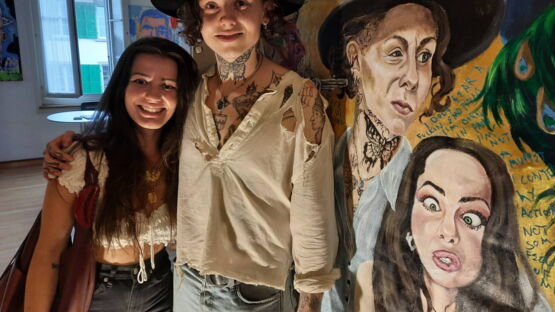11 / 17BildergalerieNoah di Bettschen mit seiner Freundin - vor seinem Portrait der beiden -