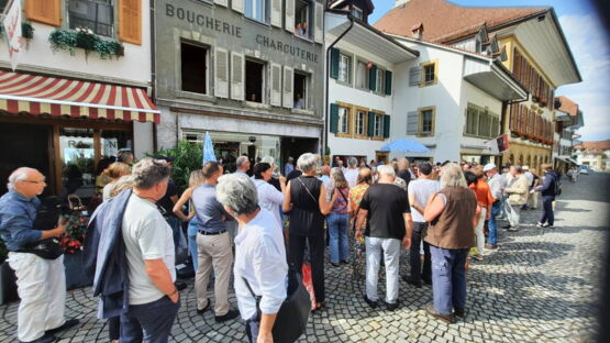 Die Vernissage am 28. Juni war mit der grossen Besucherzahl und den vielen interessanten und inspirierenden Begegnungen ein sehr schöner Anlass. «Tout Morat» war anwesend und wollte sich die Kunstwerke im geschichtsträchtigen und verwinkelten Haus anschauen und freute sich an den Gesprächen mit den Künstlern. Christine Lauterburg sorgte mit Gesang und Handorgel- und Geigenklägen für die musikalische Untermalung. Res Hugi begrüsste die Anwesenden und stellte die einzelnen Künstler kurz vor. Véronique Müller fragte bei ihrer Ansprache in die Runde, wer sich an Georges und Liselotte Danthe noch erinnern könne; es gingen einige Hände in die Luft.