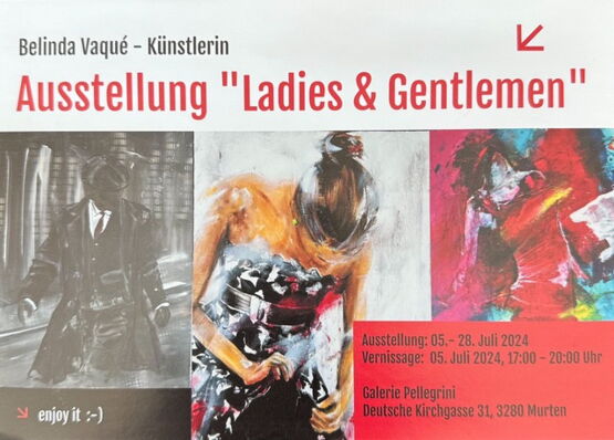 Die freischaffende Künstlerin und Lebensberaterin Belinda Vaquè stellt im Juli zum Thema Ladies & Gentlemen ihre Bilder in der Galerie Pellegrini aus.