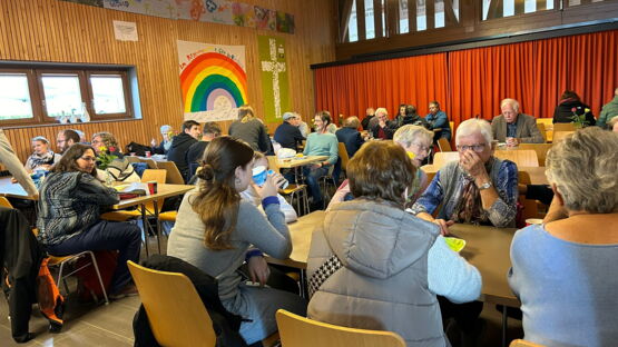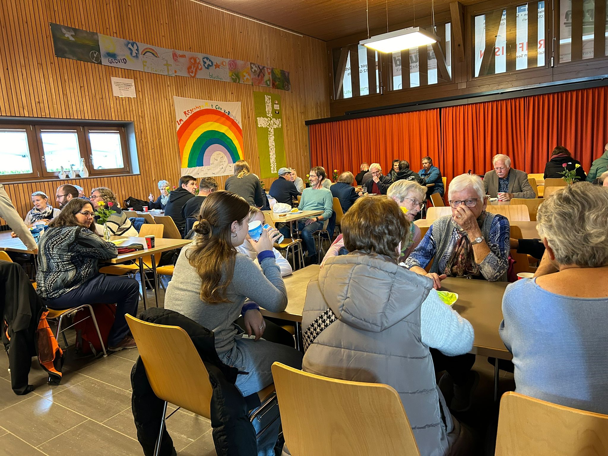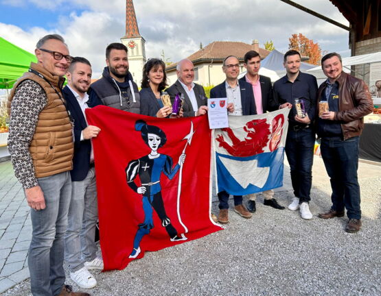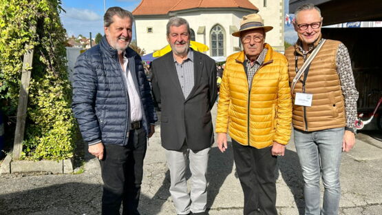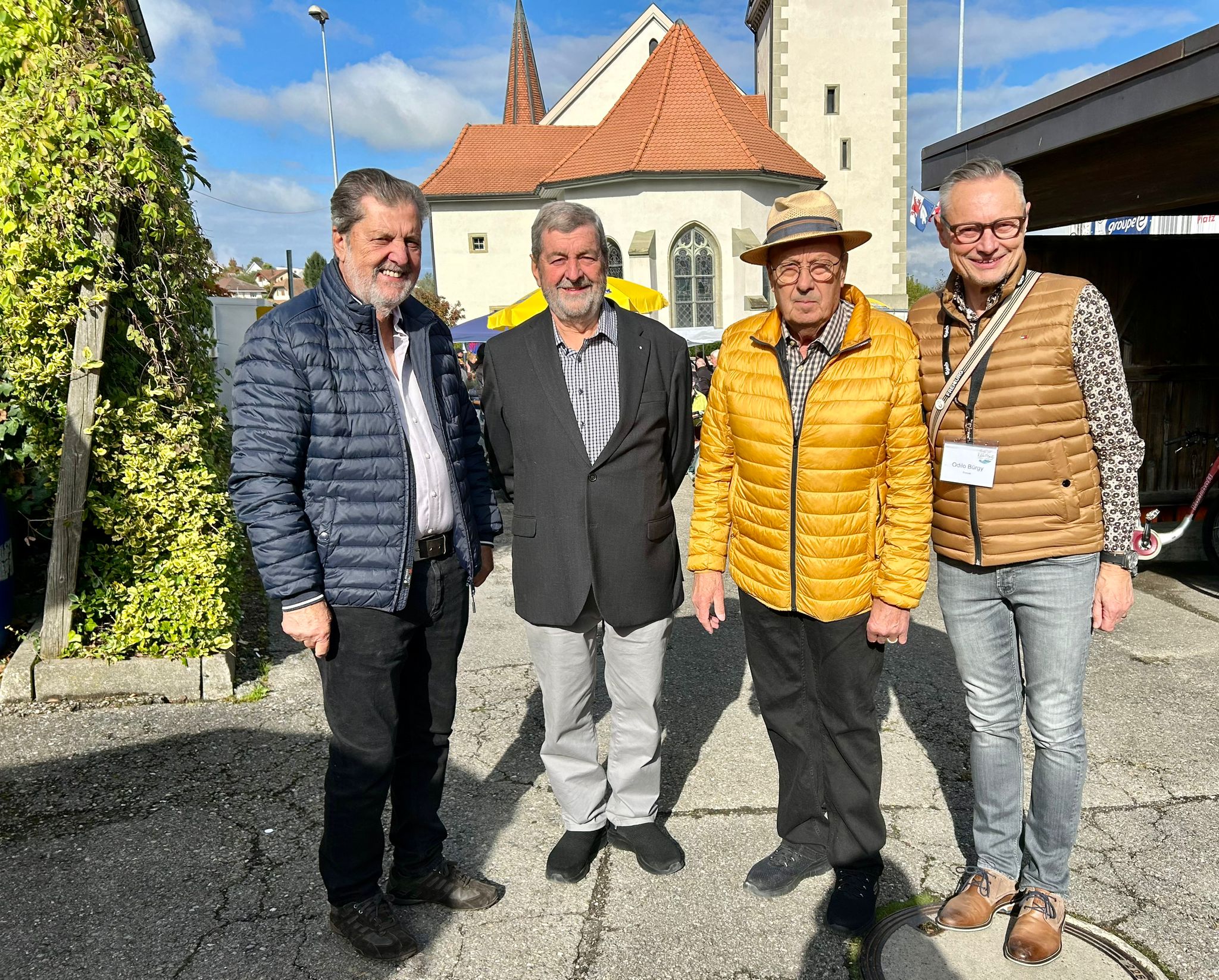 Dann gab es noch Besuch von der Seislermäss. Vom 14. bis 18. Mai 2025 wird diese in Tafers stattfinden. Der OK-Präsident der Seislermäss, Nicolas Bürgisser, kam mit Marco Herren, Odilo Bürgy, OK-Mitglieder, zu Besuch und lud Gurmels als Ehrengast an die Seislermäss ein.