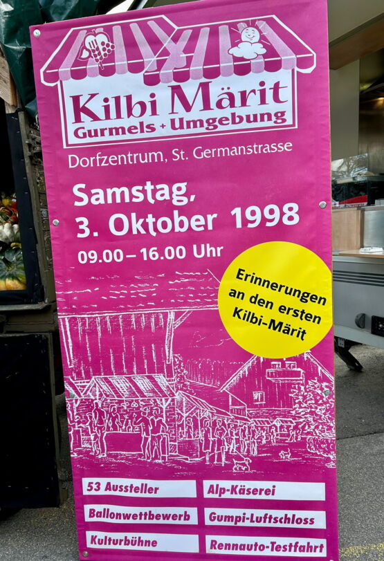 Gemäss OK-Präsident Lukas Heinzelmann wäre es der 27. Märit, aber zweimal konnte er während der Corona-Zeit nicht stattfinden. Auf dem Kürbiswagen kann man auf 25 Jahre Märitgeschichte zurückblicken und das Plakat von 1998 zeigt auf: am bewährten Konzept hat man nur wenig geändert.