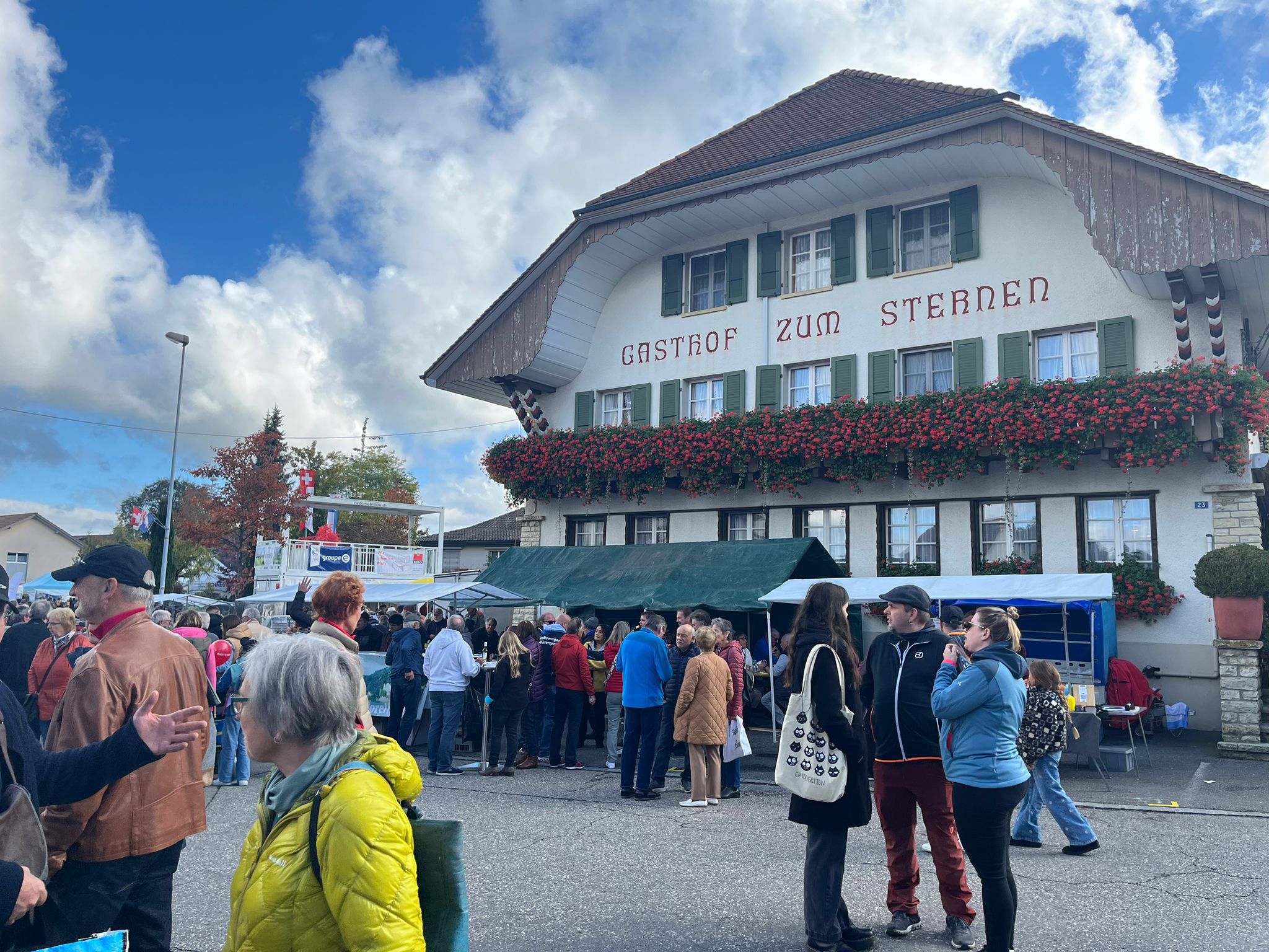 Dies sei vor allem auch möglich dank der Sponsoren, erläuterte Heinzelmann, nur so könne man die Standgebühren tief halten und er dankte allen für ihren Beitrag. In der Tat waren es rund 70 Stände mit einer breiten Vielfalt: Viel Kulinarik mit lokalen und regionalen Spezialitäten: von den süssen Seisler Brätzele (nach Gurmelsart) und vielen weiteren Schleckereien lockten Schinken, Fisch, Pasta, Asiatisches, Traditionelles und vieles mehr zum Geniessen oder Mitnehmen. Durst kam auch nicht auf, vom Cüpli zum Oktoberfest oder doch lieber Wein? Wohlweisslich sind viele mit ÖV oder zu Fuss gekommen.