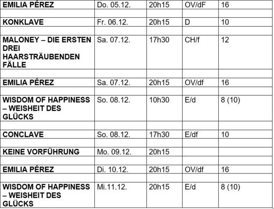 Hier finden Sie das Kinoprogramm von dieser Woche.