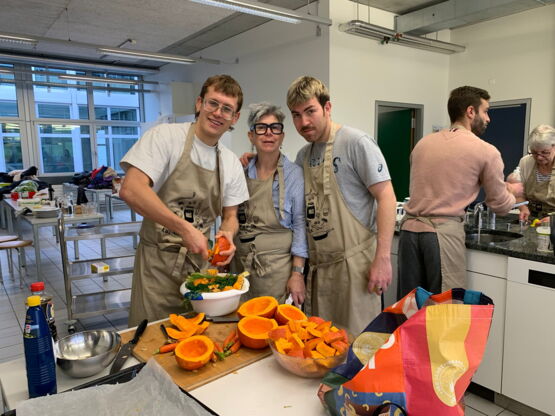 Für alle Teilnehmer*innen wurde ein feines Menu gekocht: Kürbissuppe aus dem Seeland und einen Eichblattsalat, Vorspeise und Dessert natürlich Weihnachtsguetzli.