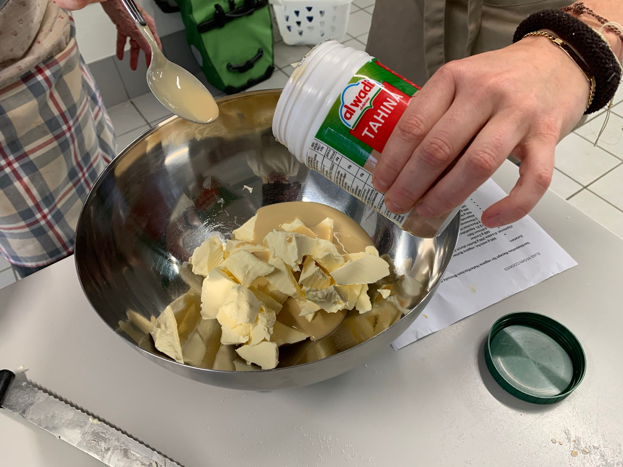 Nebst herkömmlichen wurden auch vegane und glutenfreie Guezli gebacken. Der Kichererbsensaft ersetzt die Eier, Pflanzenmargarine die Butter. Ebenso nicht alltägliche Zutaten für neue Geschmackserlebnisse sowie bessere Verträglichkeit wurden Tahina und Miso Paste eingesetzt.