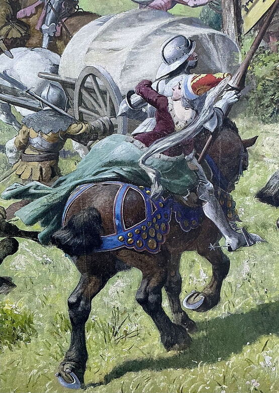 1476 erlitt Karl der Kühne grosse Niederlagen im Krieg gegen die Eidgenossen, zuerst in Grandson und am 22.Juni 1476 in Murten. Ein alter Spottreim fasst das Scheitern Karls am eidgenössischen Kampfwillen so zusammen: