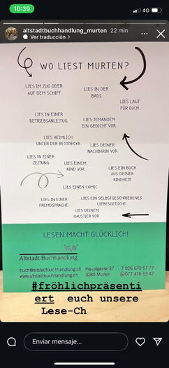 Zusätzlich werden die Leserinnen und Leser dazu aufgerufen, ein Foto von ihrem Leseort zu posten und die Buchhandlung auf Instagram zu markieren. Unter allen Teilnehmenden wird ein Büchergutschein verlost – ein zusätzlicher Anreiz, die Freude am Lesen öffentlich zu teilen und die Buchhandlung digital sichtbar zu machen.