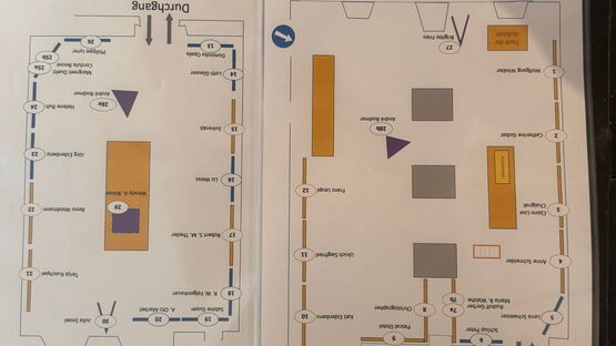 Die Vorbereitungen für die Ausstellung sind sehr umfangreich und erfordern eine klare Organisation. Dazu gehört das Zusammenstellen der Listen der angemeldeten Bilder, das Sortieren und Beurteilen, welche Werke wo am besten wirken. Den Ausstellern wird ein Plan zur Verfügung gestellt, auf dem genau zu entnehmen ist, wo ihre Bilder aufgehängt werden sollen.