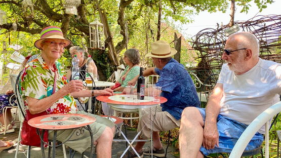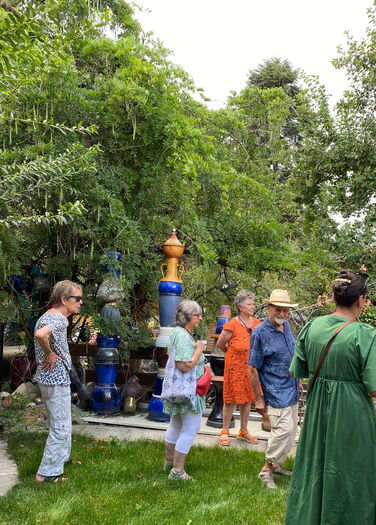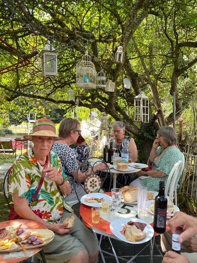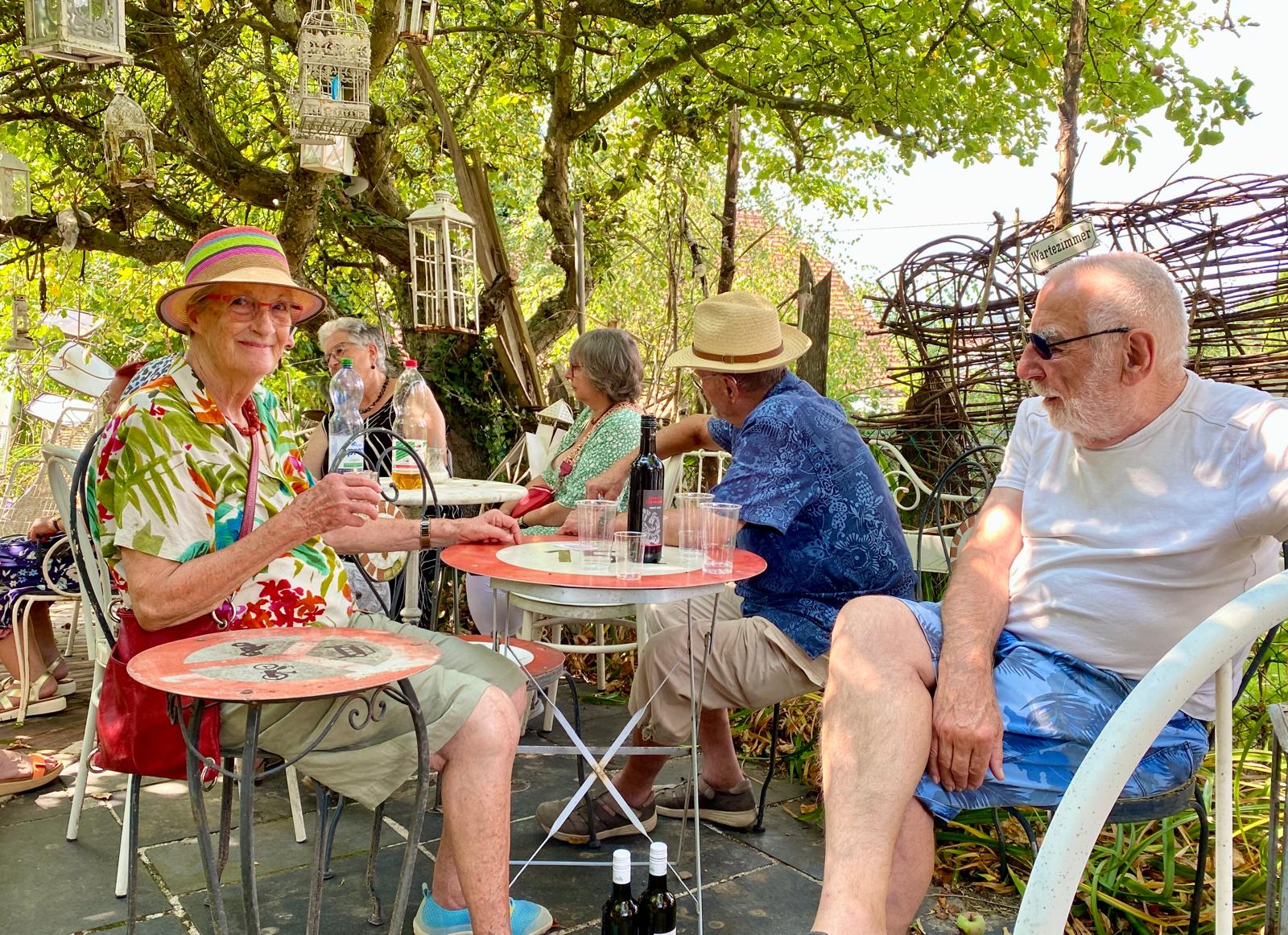 Nach dem ausführlichen Rundgang durch das Kurioseum Cordastum liessen die Mitglieder den Nachmittag entspannt ausklingen. Mitten im Garten, unter schattigen Bäumen, genossen sie ein Apéro – stimmungsvoll untermalt vom fernen Donnergrollen. Ein rundum gelungener Ausflug, der sehr stimmig die Freude an der kreativen Vielfalt des Vereins LACabane widerspiegelte.