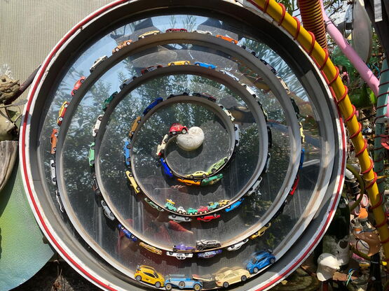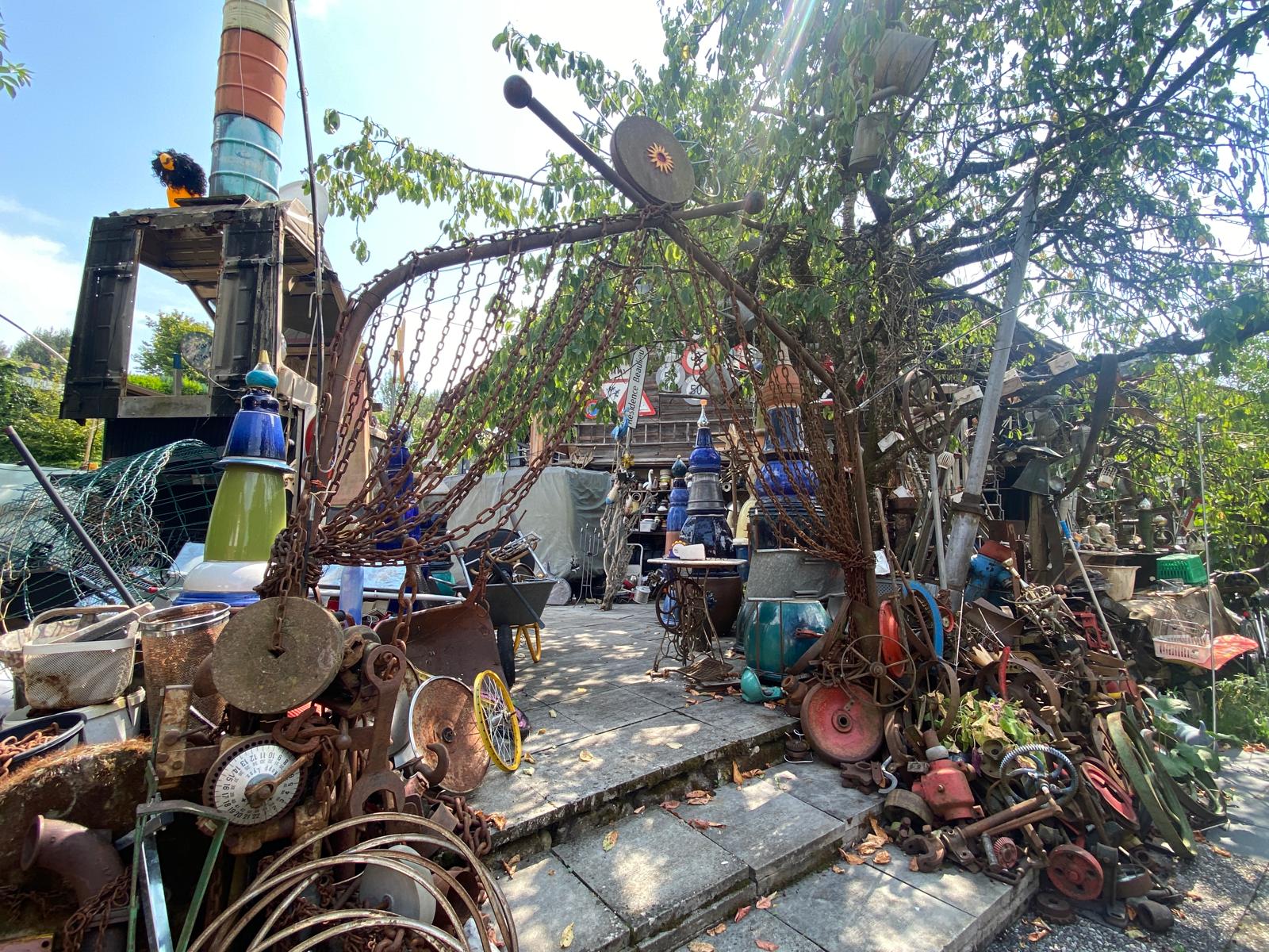 Wer Heinz Beier besucht, sollte sich auf eine Reise voller Überraschungen einstellen. Gleich am Eingang beginnt das Abenteuer, denn hier gibt es keinen «Eingang», sondern einen «Einkomm», denn schliesslich kommen die Besucher – logisch, oder? Die Liebe zum Detail ist überall sichtbar, aber es ist schlicht unmöglich, all die Installationen, Hinweisschilder, Zweckentfremdungen und Wortspiele zu erfassen, da bräuchte man mindestens vier zusätzliche Augen. Zu jedem Kunstwerk hat Heinz eine fesselnde Geschichte zu erzählen – oder mehrere, was den Rundgang zu einem noch spannenderen Erlebnis macht.
