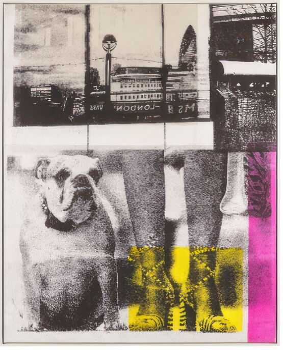 Die Künstlerin fotografiert gern Bauten, teils nur Ausschnitte davon, die dann frei und fantasievoll auf Papier gedruckt werden. Ab und zu finden sich auch Hunde meistens in Kombination verrückter Schuhe oder Kühe mit Hörnern wieder.