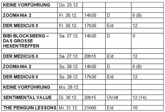 Am 24. Und 25. Dezember bleibt das Kino geschlossen.