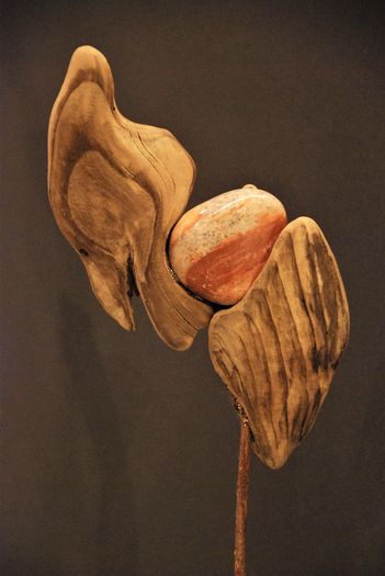 Am Anfang war der Stein – und dann kam Holz (Schwemm- und Altholz) hinzu, Metall (vom Alteisenhändler) und seit etwa zwei Jahren die Tonköpfe, die seine Partnerin gestaltet. Auch sie hat ihre Kunstfertigkeiten erst recht spät im Leben entdeckt. Holz und Stein findet der Künstler (oder finden den Künstler), wenn er zu Fuss, mit Rad oder Kajak unterwegs ist. Auch Freunde schenken ihm ab und zu einen besonders schönen Stein oder ein Stück Holz.