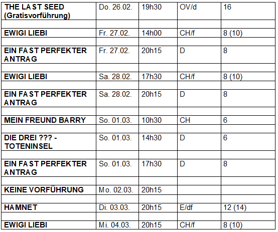 «Ewigi Liebi» und «Mein Freund Barry» stehen nebst anderen Filmen weiterhin auf dem Programm.