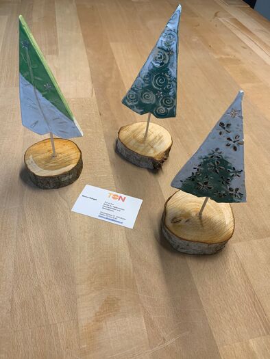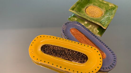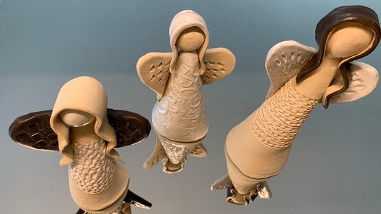 Auch handgemachte Tonteller, Blumentöpfe, Garten- und Weihnachtsdekorationen, Stehskulpturen und vieles mehr hat Monica Rathgeb im Angebot. Seit sie ihre Kreationen nicht mehr im Laden töpfert und ausstellt, hat sie sich zu Hause ein kleines Atelier eingerichtet. «Wer sich für meine Produkte interessiert, darf auf Anfrage gerne vorbeikommen», so die Töpferin. Die Corona-Massnahmen können dabei gut eingehalten werden, fügt sie an.