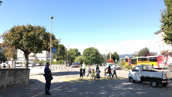 Ja, wenn der Unterricht am Mittag zu Ende ist sowie beim Unterrichtsende am Nachmittag sind jeweils vier Schüler dabei. Zwei zusammen übernehmen dann einen Fussgängerstreifen. Zu Schulbeginn am Morgen und am Nachmittag erledige ich den Dienst alleine oder zum Teil mit Unterstützung der Stadtpolizei, wenn sie Zeit haben. Meine Aufgabe ist es zu schauen, dass während des Patrouillendienstes keine Probleme auftreten und die Schüler ihren Dienst wahrnehmen können.