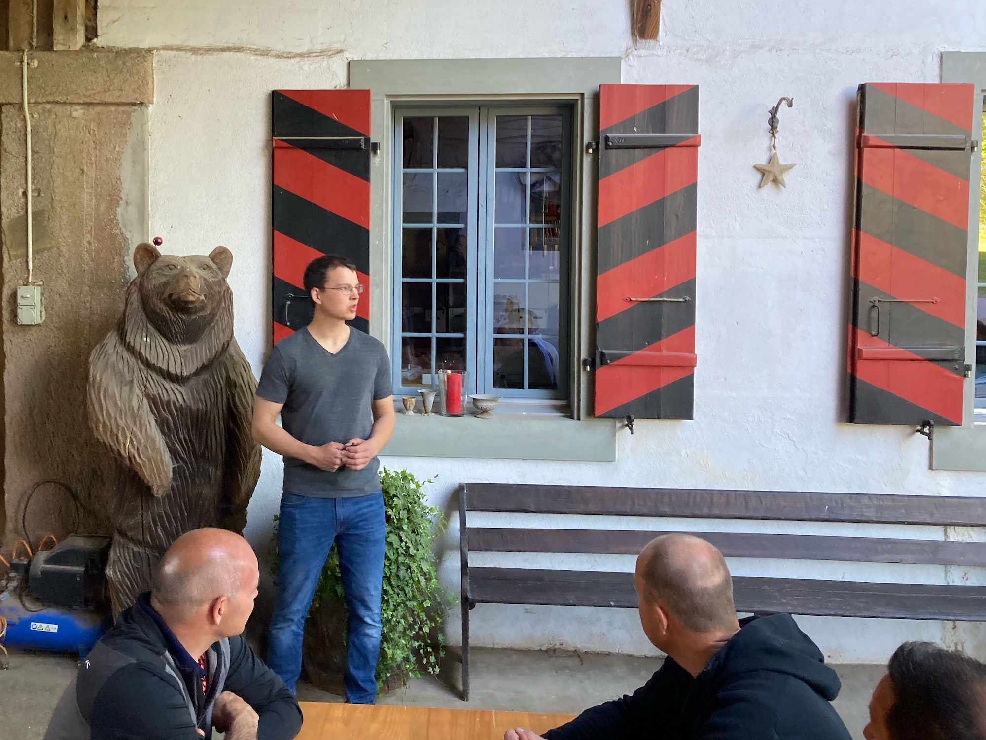 Anschliessend durften die Mitglieder der SVP See die Köstlichkeiten des Hofs geniessen. Ein Grosses Dankeschön gilt den Gastgebern Vreni und Alfred sowie Inès und Fredy für den herzlichen Empfang mit hofeigenen Produkten wie Wein vom eigenen Rebberg, AOC Alpkäse der Alp Inner-Iselten und Trockenfleisch aus ihrer Simmental Reinzucht. Übrigens wurde dieser Hubel im Anfangsjahr (2014) dieses Fusionsprozesses mit der SRF „Landfrauenküche“ national bekannt. Wer wissen will, wieso hier im Stall Simmental-Tiere stehen, der sollte die Sendung vom 30.10.2014 auf YouTube dringend nachschauen (Video unten).