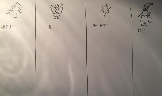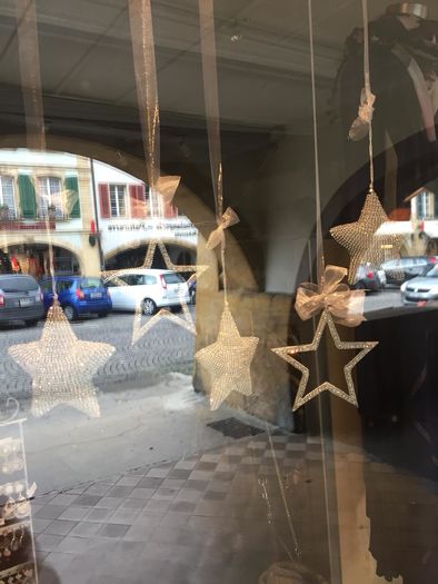 Heute gehe ich mit meinem Kind in die Altstadt von Murten und wir betrachten die Schaufenster ganz bewusst, indem wir etwa nach Sternen suchen oder nach Engeln, Tannenbäumchen, "Samichlöisen" etc. Bevor wir starten, zeichnen wir für jedes Weihnachtssymbol nach dem wir Ausschau halten, eine Sparte, die das entsprechende Bild enthält. In der Altstadt angekommen, suchen wir die einzelnen Schaufenster ab. Entdeckte Symbole, wie beispielsweise Sterne, vermerkt das Kind in Form von Strichen auf der Liste.