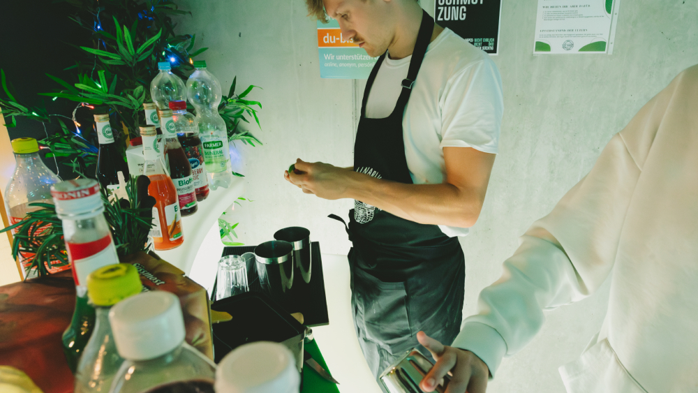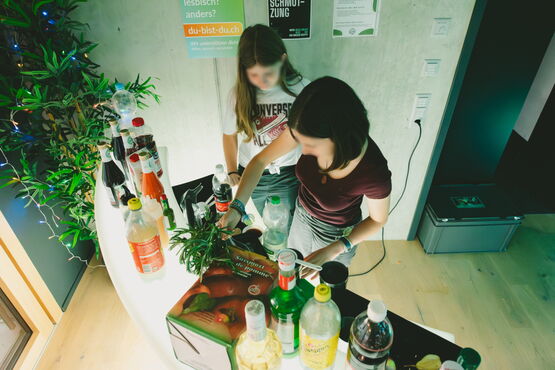 «Mercato» ist der Abholmarkt für Biogemüse und frische Früchte für Gastronomie, Händler, Schulen und ist ein Angebot von TerraViva in Kerzers, mit denen wir sehr eng zusammenarbeiten. An der Bar können die Jugendlichen selbst vitaminreiche, alkoholfreie Mocktails zubereiten, was ihnen sichtlich Spass macht und zeigt, wie gesunde Drinks gemischt werden können.