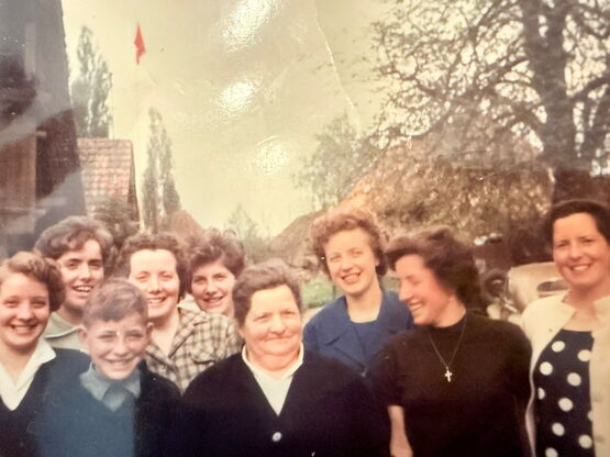 Bildlegende: Mutter Rosa Goetschi-Corpataux (Mitte) mit ihren acht von neun Kindern