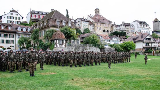 Brigadier Seewer erinnerte in ihrer Antrittsrede an tief verwurzelte Werte in der Schweizer Geschichte, wie die Notwendigkeit zur gegenseitigen Unterstützung. Der Bataillonskommandant seinerseits rief zu vorbildlichem Einsatz seiner Soldaten während des Wiederholungskurses auf, wünschte gleichzeitig eine bedachte und unfallfreie Dienstleistung. Mit einer finanziellen Unterstützung für den weiteren Vereinsaufbau, Schoggi und Militärbiscuits im Hosensack und der Überzeugung, den Soldaten stimmige Klänge in die beginnenden Diensttage mitgegeben zu haben, verabschiedete sich die Stadtmusik mit dem "Murtner Fähnlein" vom Bataillon Ondi 16 und seinen geladenen Gästen