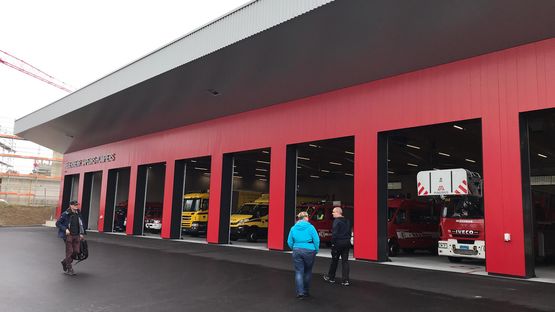 Die Einsatzfahrzeuge der Feuerwehr beziehen ihren neuen Standort