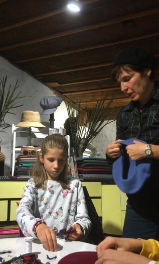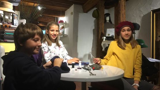Als ich diese Woche bei Anita vorbeischaute, traf ich auf drei Ferienpass-Kinder, die ein Beret nach ihrem Gout dekorierten, es war gerade die grosse Stunde der Anprobe. Sara, Amélie und Linus begutachteten sich zufrieden im Spiegel, Anita half mit einem letzten Nadelstich und gab Tipps zum Tragen.