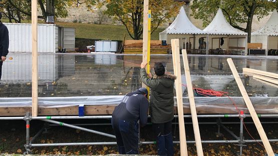Endspurt beim Aufbau von Murten on Ice – am Donnerstag geht’s los!